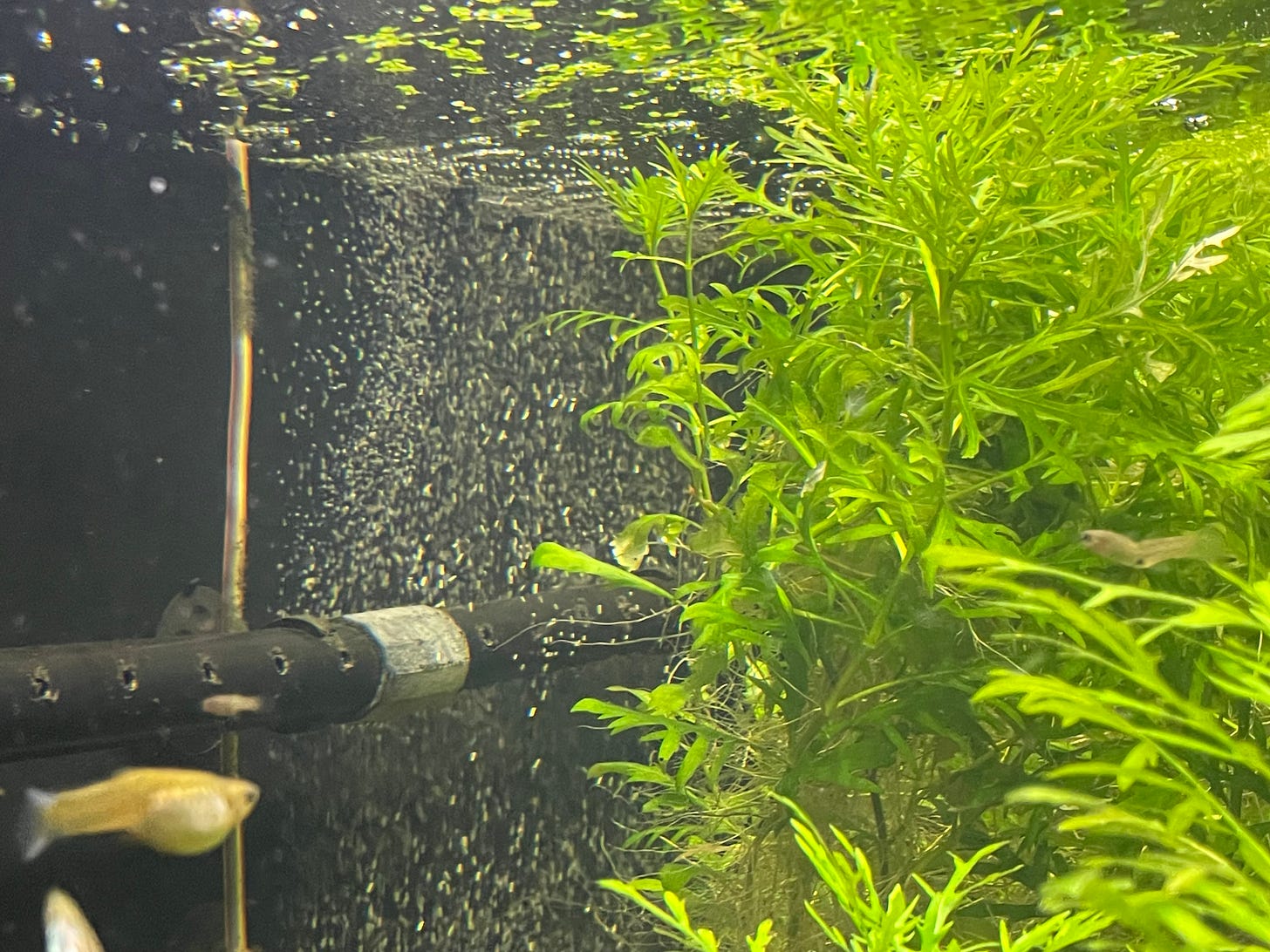 The tank’s deeper than most standard setups, so I had to get air pumps rated for deeper tanks. Otherwise your sponge filter just sits there looking like it’s working while doing absolutely nothing.